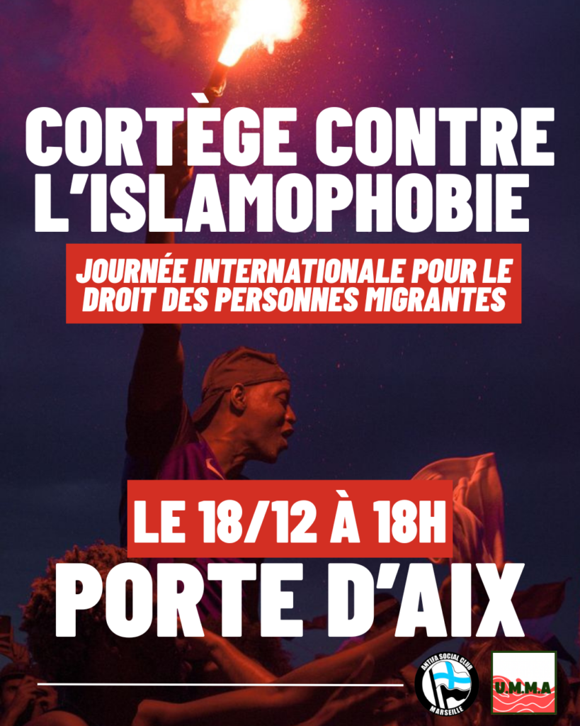 Ce 18 décembre, pour la journée internationale du droit des migrant.e.s, l’Antifa Social Club Marseille et le collectif UMMA s’allient pour porter un cortège contre l’islamophobie. Lire la suite…